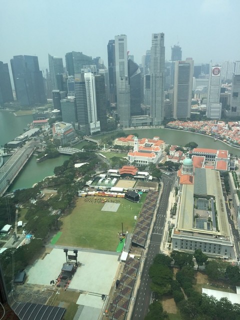 シンガポールで一番高い場所(70階)のレストランとして有名ですが、内装はバブル期の内装みたいでイマイチ(^_^;) マア、内装はともかく、70階からの景色は素晴らしいので問題ありません(^_^;)。