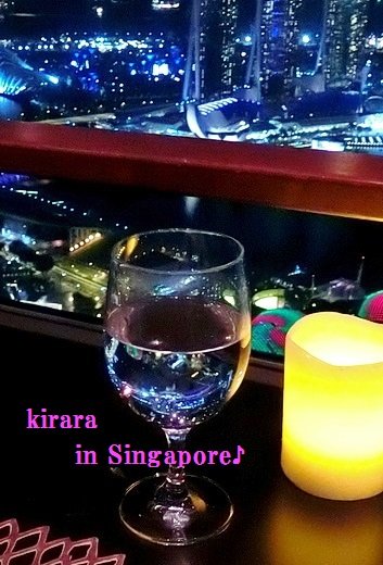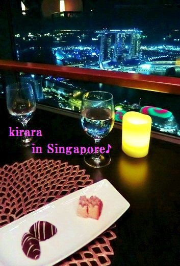 予約は20時でしたから、すでに日は落ち、窓イッパイに広がるマリーナベイビューの煌きを見て、テンションはグングン上昇(^_-)-☆