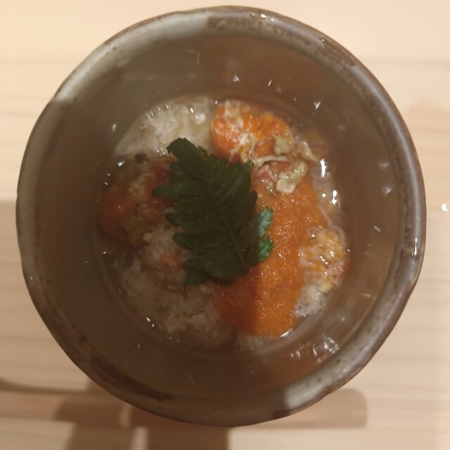ねっとり甘い牡丹海老に、程よい塩味のキャビアが絡みます。