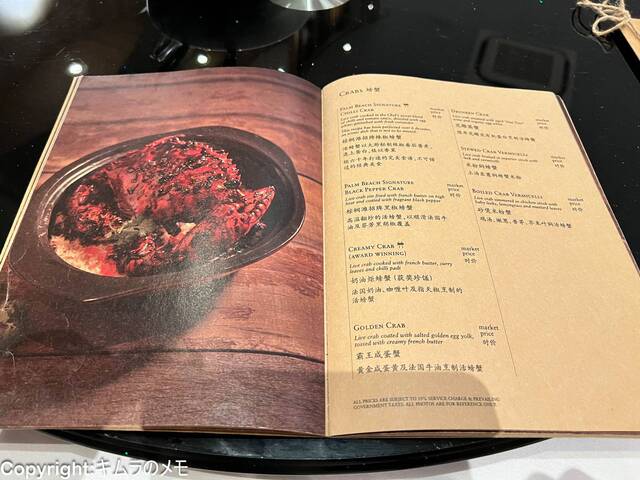 今回もそのチリクラブをお目当てにやってきたのだが、メニューを確認してちょっとドキドキ。