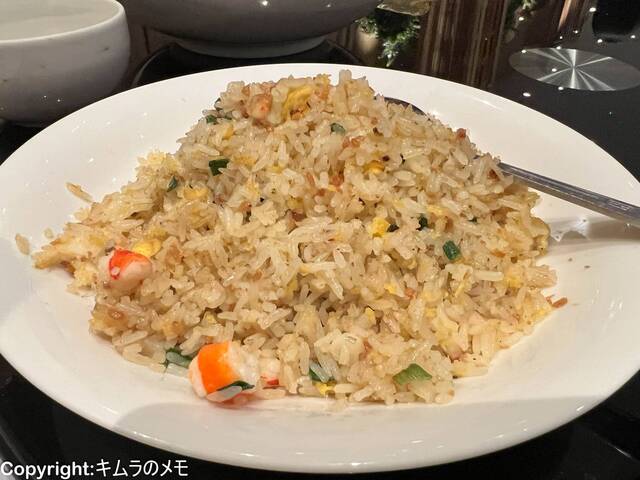 インディカ米を使い、しっかりと油を絡めていることもあってパラパラな仕上がりになっており、エビなどの海鮮もたっぷりと入っているので、これだけで頂いても十分なレベル感であった。