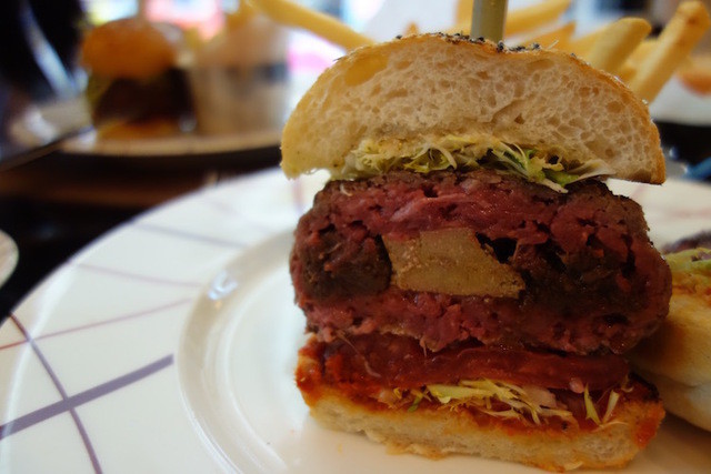 パティの中にフォアグラとステーキがサンドされているゴージャスさ。