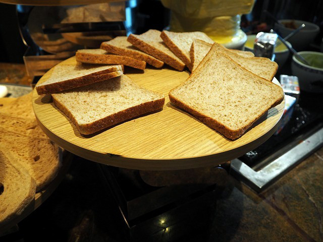 そのほか、パンコーナーには、ベーグル、バゲット、デニッシュなど、魅力的なパンが並んでいます。朝ごはんならよかったのにと思う美味しそうなパンですが、今日は他のお料理を試したく、ぐっと我慢です。カヤトースト用の薄切りパンもあります。思わず手に取ってしまいそうでしたが、やめておきました。デザートが充実しているので、ここでカヤトーストを食べてはいけません(笑)