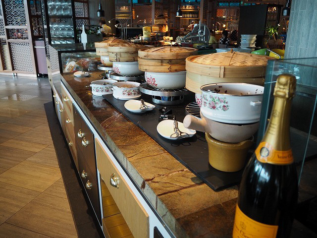土曜日のランチタイムは、「Makan makan」と呼ばれるブッフェ。シンガポールのローカルフードやプラナカン料理を含むアジア・パシフィック料理が並びます。中でもお薦めはシーフード。ロブスターやエビなどがある豪華な内容です。お値段はひとり48ドル(+税・サービス料)と少々お高め。でも、お値段に見合った内容ですので、リピートしています。