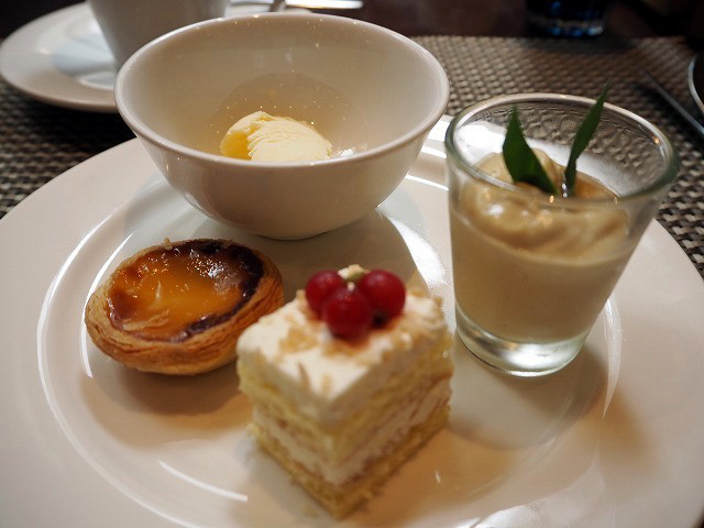旦那は、アイスクリームにムース、ショートケーキにエッグタルトを選んでいました。