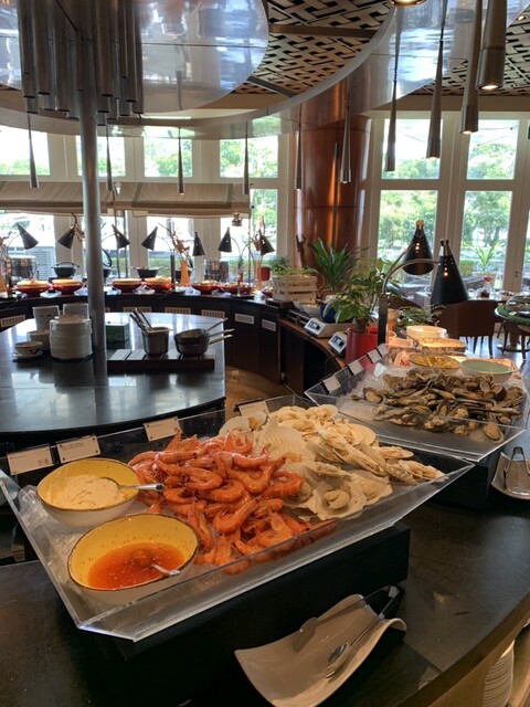 今年の2月に利用した朝食ビュッフェが好印象だったので、マーライオンの観光ついでに平日ランチビュッフェを利用。客入りは8割程度(念のため予約した)。