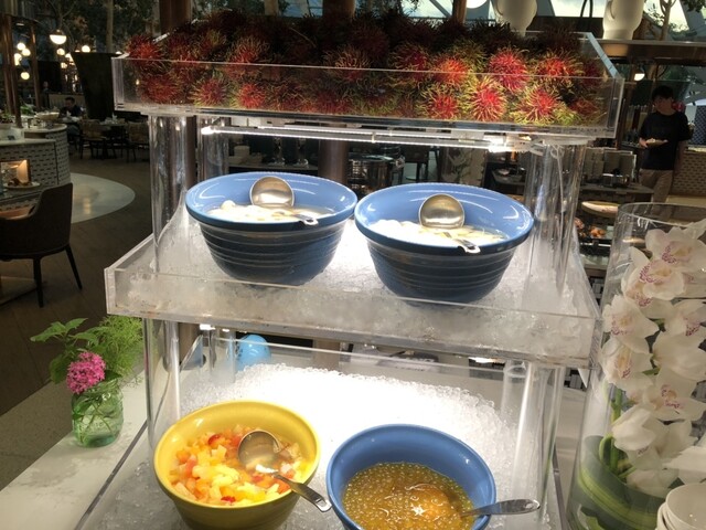 モーニング自体は品数豊富、シンガポール料理、パンやシリアル、ハム、ソーセージ、オープンキッチンでの卵料理、中華のお粥や天津、ご飯に味噌汁、焼き魚と言った和食、キムチなど、かなりの品揃えです。果物もジュースも多いし、一泊では全然食べ尽くせないレベルです。3,4回来たいぐらい…お金がとんでもないことなるけど…味もどれもホテルのモーニングとしては申し分ないです。また、旅行中に食べれたら食べようぐらいのレベル感で思っていた料理が、かなりクリアできたのもあって、そういった点でも満足出来ました。