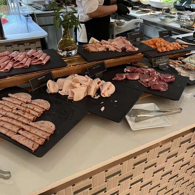 マリーナベイサンズの1階に位置するオールデイダイニング。週末、朝食ビュッフェを利用。ホテル宿泊客以外も利用可。2024年3月時点で税サ込S$62.35(7,000円相当)。