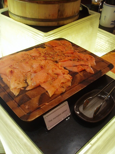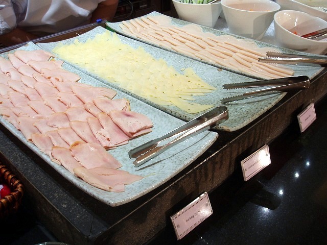 ハム、チーズのほか、スモークサーモンもありました。このサーモン、スモークされて香りよく、濃厚で美味しい。(アメリカのベーグルと一緒に食べたい♪)