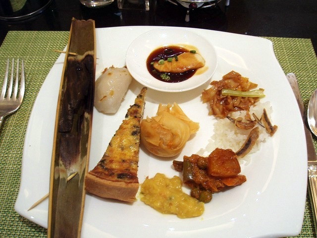 魚のつみれをバナナの葉で包んで焼いた「オタ」や、ココナッツミルクで炊いたご飯におかずを組み合わせる「ナシレマッ」、ココナッツミルクと卵のジャム「カヤジャム」トーストにつけて楽しめるなどローカル色満載。滞在時間が限られているので、少しづつローカルフードがいただけるのがうれしいところです。
