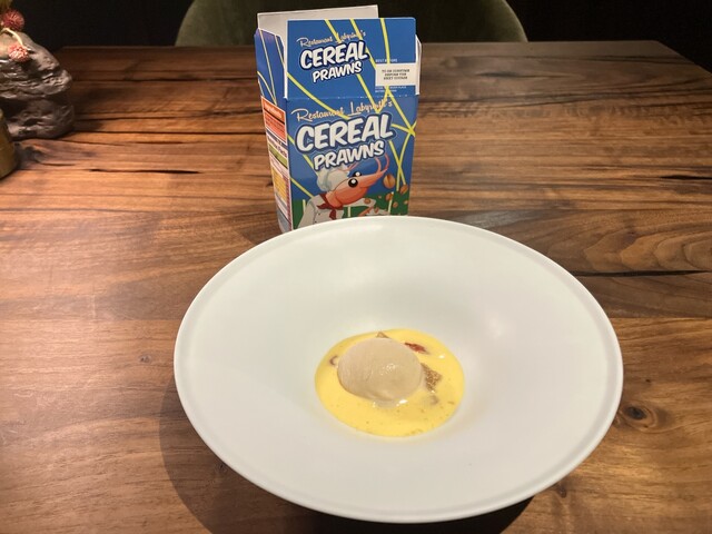 ★7 CEREAL PRAWN shaoxing oatmeal ice cream - salted egg フレーク自分でかける前