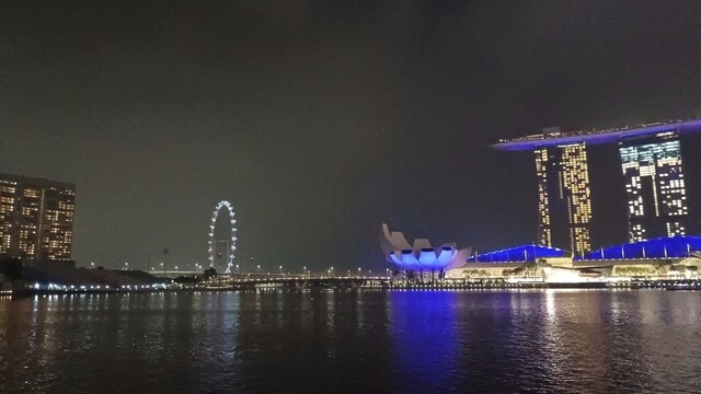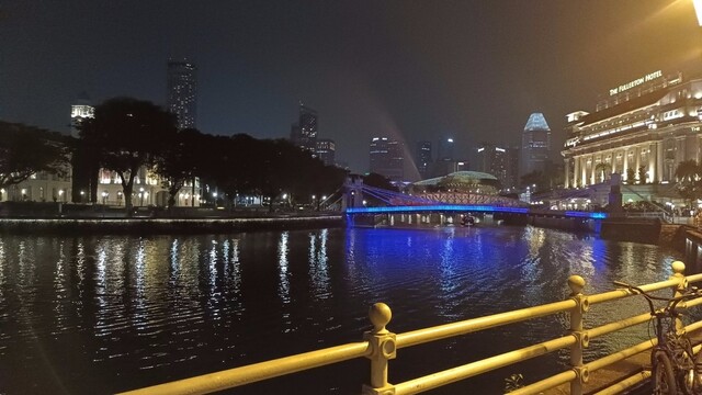 夜のシンガポール川やフラートンホテルを観ながらラッフルズ・プレイス駅から歩くと開始10分ぐらい前に公園に到着。