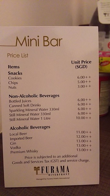 そこそこいいホテルみたいで、客室のミニバーもいいお値段。