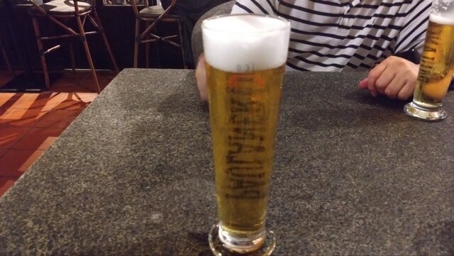 友人と私はドイツビール「パウラナー」300ml(1,300円ほど)、妻はスプマンテのグラス(1,000円ほど)で乾杯。