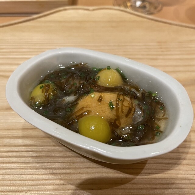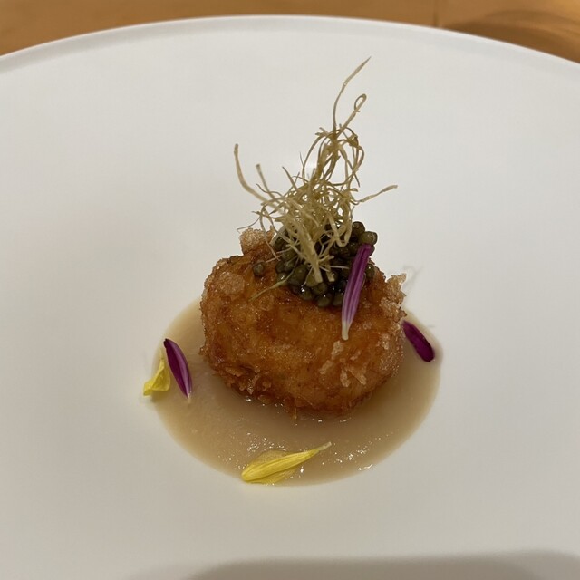 きんき カリッと揚げた皮の裏から溢れ出す脂の旨みとナスは甘いウーロン茶と