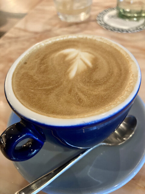 フラットホワイトを注文。ああ、今日もよく食べた。