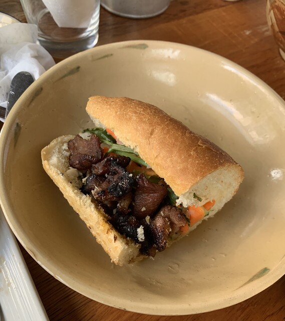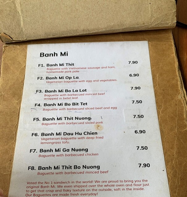 日本でも一部の食べログ界隈で強く支持されるバインミー。具は鶏モモ肉グリルです。フランスパンは粘りのないサックリ系でして歯切れがよくこの辺りの仕上がり感も流石。一緒に挟まれたピクルスの酸味がサッパリ感を演出して尚良し。