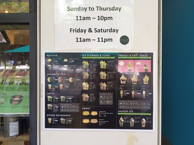 メニューは抹茶、日本茶、アイスブレンド、フロート、わらび餅、白玉、パフェ、ソフトクリーム、かき氷など。