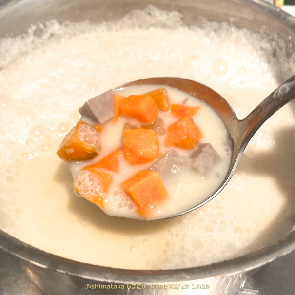 2.28 昼食のデザート タロイモ,サツマイモなんかの4種の芋類を温めたココナッツミルクでどうぞ 意外とカロリー低そう?