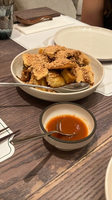 Spicy-tangy Assam sauceが強烈な辛さ、旨みはエスニック系の妙な酸味、食べられなかった。