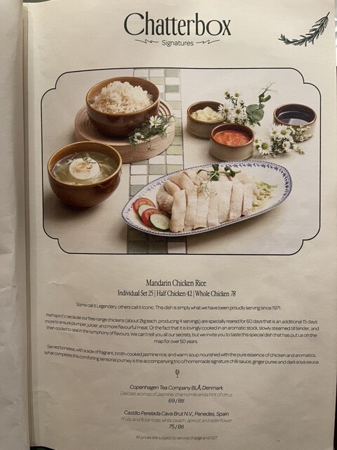 素晴らしくおいしいチキンライスでした。最高でした。コースでいただいたのですがチキンライスがとにかく美味しい。またライチが入っている美味しいアイスティーも最高。最後にいただいたココナッツアイスも最高でし...