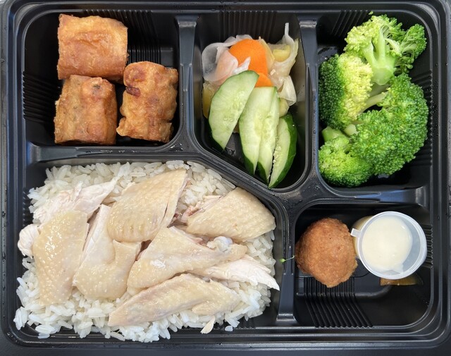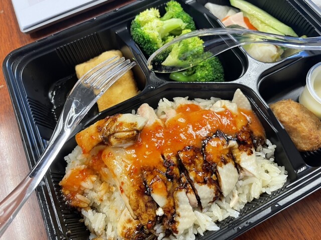 会社のランチでデリバリー注文。シンガポール名物チキンライスです。