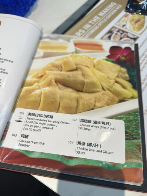 Signature Boiled Chicken ハーフで13ドル(1,000円ちょっと)