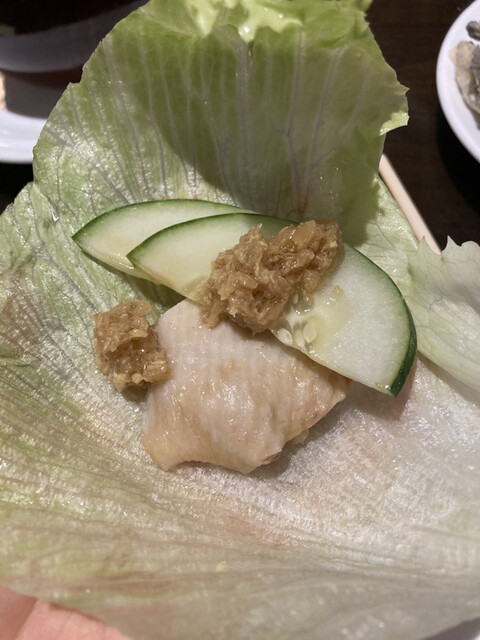 レタスがセットでつくので、こんな感じでレタスと巻いて、ジンジャーソースをたっぷりの乗せていただきます。うーん、さっぱりしていておいしい!