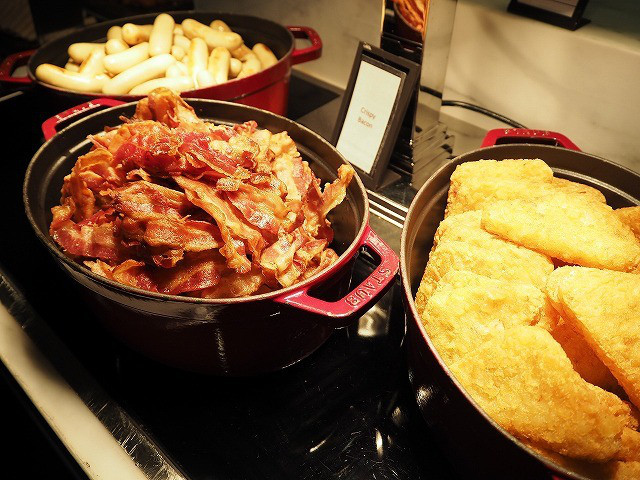 ソーセージ、ベーコン、ハッシュポテトなど、アメリカンブレックファーストの定番もあります。