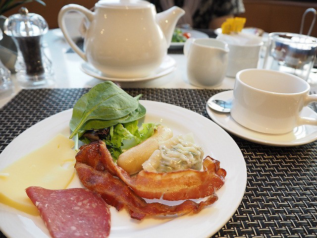 窓際の明るい席でゆっくりくつろぎながら、美味しい朝食を楽しみました。ラウンジは、1階のレストランに比べて明るく、そして、混み合ってきても静か。ゴールド特典の朝食は、1階のレストランでもいただけますが、アップグレードされたときには、ラウンジがお薦め。落ち着いた時間が過ごせます。