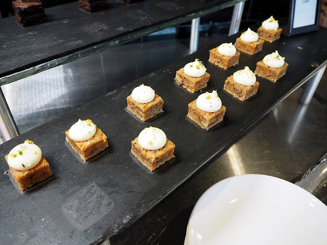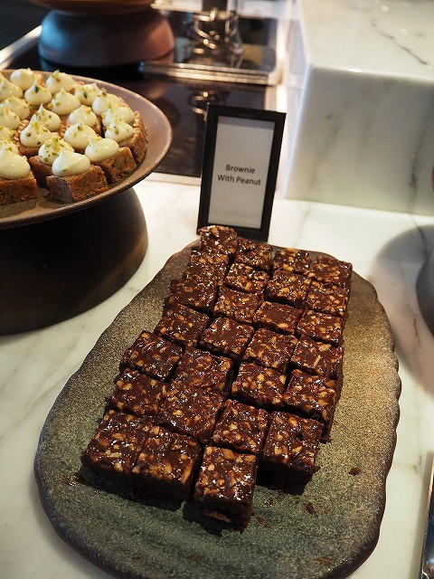 香ばしいピーナッツが入ったブラウニー。とっても甘そうで、遠慮しておきました。このほかに、チョコレートケーキがもう一種類ありました。