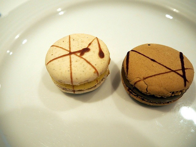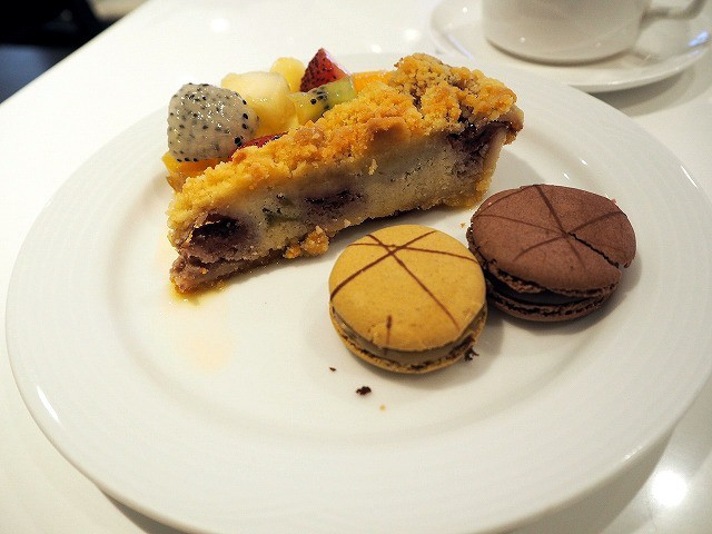 甘いものも少し。(少しじゃないというツッコミはなしでお願いします)クランブルが香ばしいタルトは、サクランボが効いていて美味しいもの。マカロンはチョコレートとキャラメル味。甘~いマカロンでした。マカロンだけ、お代わり。夫婦で仲良く分け合っていただきました。