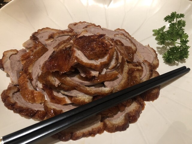 シンガポールで食事オススメを在住者のブログで探していた中で一番気になった北京ダック、そのオススメの店と言うことで予約しての訪問です。デンプシーヒルのグッドウッドパークホテル内にあります。デンプシーヒルは、緑豊かで閑静な歴史あるエリアとのことで観光としても穴場らしいけど、如何せん観光地らしい観光地はなく、MRTも通っていないので、なかなか旅行では気軽には行きにくい場所です。ホテルからではなく、タクシーの呼び方もあまりわかっていなかったので、Googleマップで調べてバスで行きました。バス停から暗い夜道を10分ぐらい歩いて、公園、庭園の合間を抜けて到着しました。ホテルと言っても大きな建物ではなく、広い庭園ホテルの様で、こちらのレストランも専用の一階建ての広いレストランです。綺麗でお洒落、高級感もありますが、そこまでドレスコードは気にしなくて良さそうです。