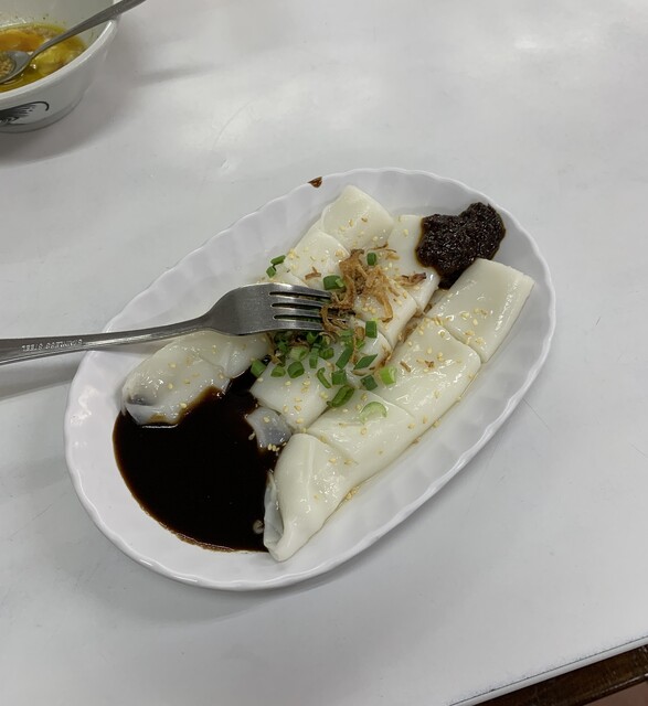 〇チョーフン(おすすめ):チョーフンの最も一般的な食べ方である甘味噌とチリペースを添えて提供されます。甘味噌とチリを好みの分量で配合して米粉で作られたツルリとしたチョーフンを頂きます。チリはちょっと辛いです。