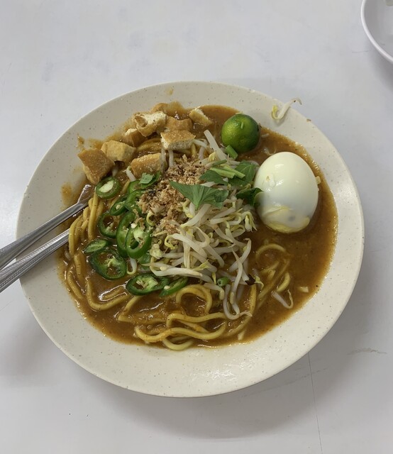〇ミーシャム(おすすめ):ミーシャムはタイ料理の要素を取り入れたシンガポールのご当地麺グルメ。これは表現が難しい味なんですが、ライムを絞り入れて酸味と辛さの入り混じった複雑な味になります。