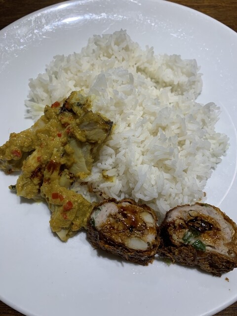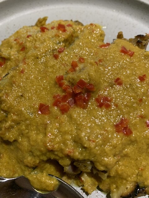 説明によれば、a true signature here。ジューシーな骨なしチキンのグリルをスパイスたっぷりのココナッツミルクソースでいただく逸品。