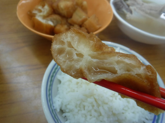 運ばれてきたスペシャルバクテー(10 SGD)と油条(揚げパン 2 SGD)