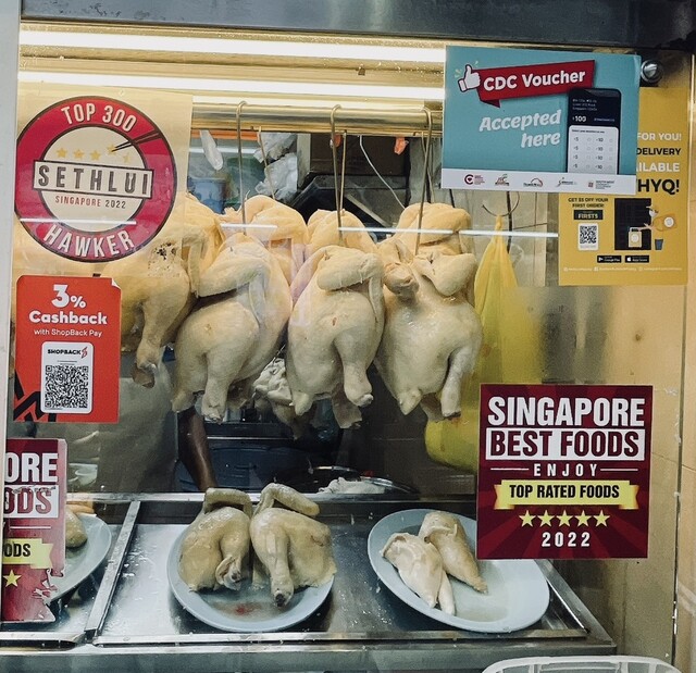 家族旅行でお邪魔。シンガポール・マクスウェル駅至近、マクスウェルフードセンターに入居するシンガポールエスニック料理店。看板商品のチキンライスが大人気。130近いストールが軒を連ねる当ホーカーセンターでも指折りの行列店。