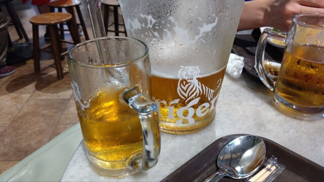地元のタイガービールをお供にこちらも美味しくいただきました。