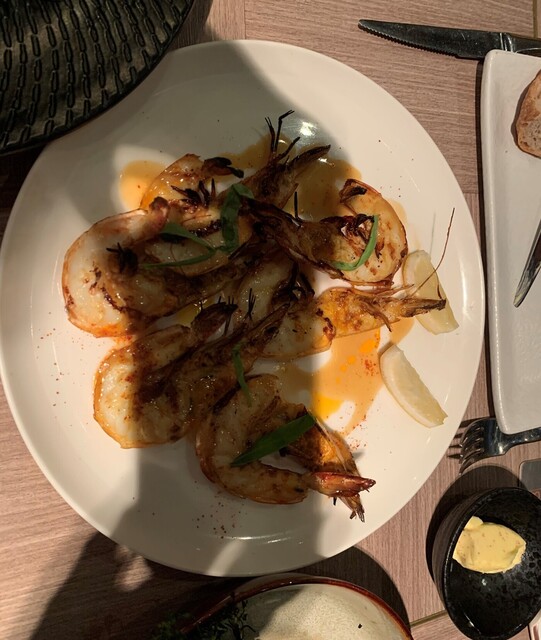 〇タイガー海老のグリル:シンガポールでは海老がとにかく美味しい。海老味噌ジュワーっでした。