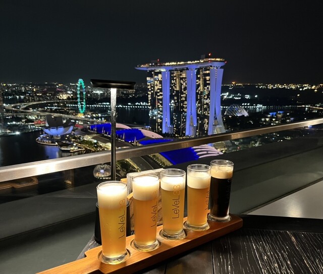 ガイドブックで夜景スポットとして必ず登場するマリーナベイを一望できるクラフトビールレストラン。以前行った1 Raffles Placeの63階にあった1-Altitudeが閉店してしまったのでFina...