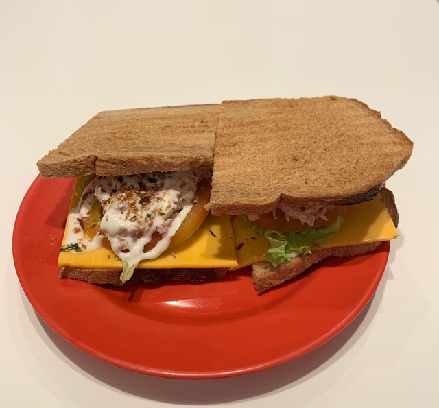 〇ツナマヨ・トーストウィッチ:日本でも慣れ親しんだ味。刻みタマネギ入ってます。