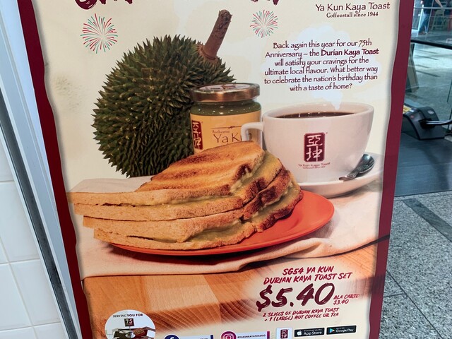 〇ドリアン・カヤジャム・トースト(2020年版):8月の建国記念日に合わせて期間限定発売されるドリアン味のトースト。