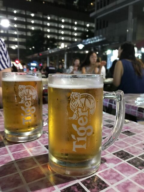 私たちは”海老と鶏とラム”のサテーセットとタイガービールをオーダー。