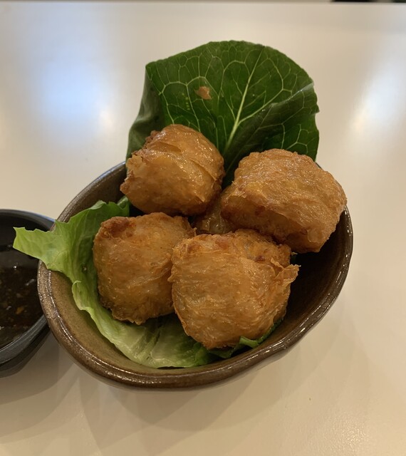 あまりの美味しさに驚いた海老ボール。サイコロ切りされたヤム芋がシャリシャリ感を加え、味も食感も両方楽しめます。