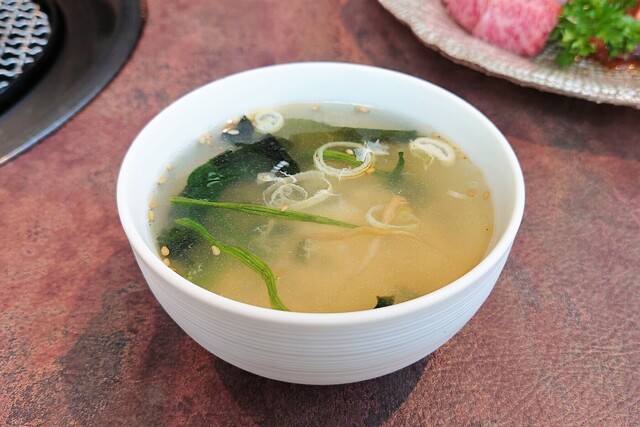 肉汁と脂とタレをやさしく受け止めてくれる焼肉にピッタリな炊き加減のふっくらごはんと、肉の脂をさっぱりリセットしてくれるおいしいスープ。