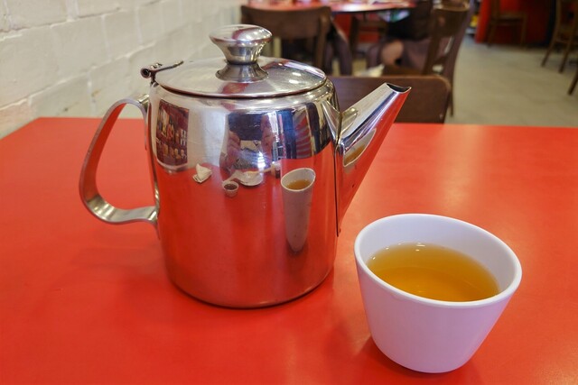 HotとColdが選べるお茶。ポットにたっぷりと入っているので2人でも足りそうです。