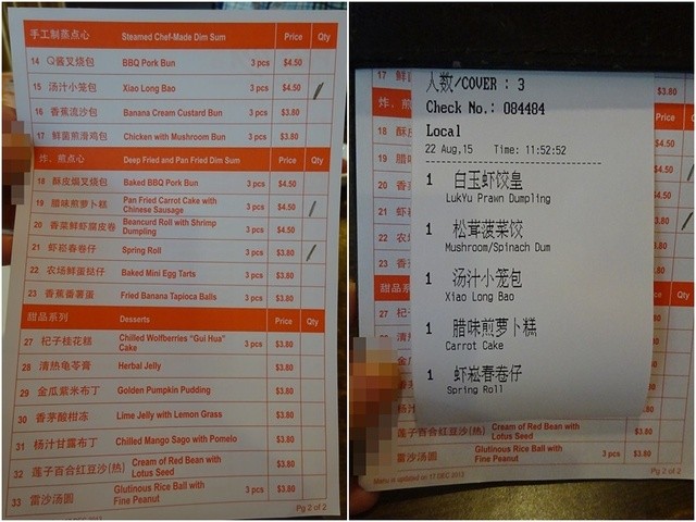 Carrot Cake3個SGD4.5/Spring Roll3本SGD3.8/Luk Yu Prawn Dampling3個SGD4.5/Mashroom&Spinach Dum3個SGD3.8