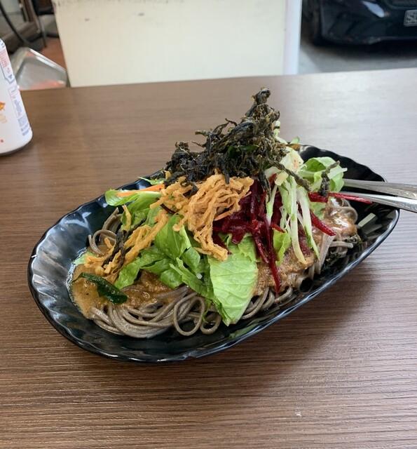 蕎麦麺とサラダを胡麻ソースで食べます。塩っ気がなく、こちらは口に合いませんでした。