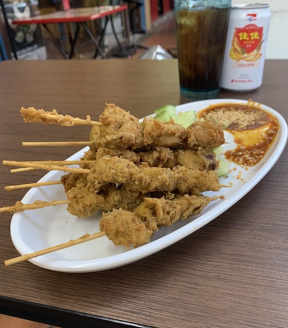 サテーとはタレに漬け込んだ鶏肉や牛肉を串に刺して強火で焼き上げ特製ピーナツソースをたっぷり付けて頂くマレーシアの串料理ですが、素食なので豆腐で出来ています。ベジタリアン・サテーという料理名で提供されていますが、サテーの事は忘れて豆腐料理だと思って食べた方がよさそうです。
